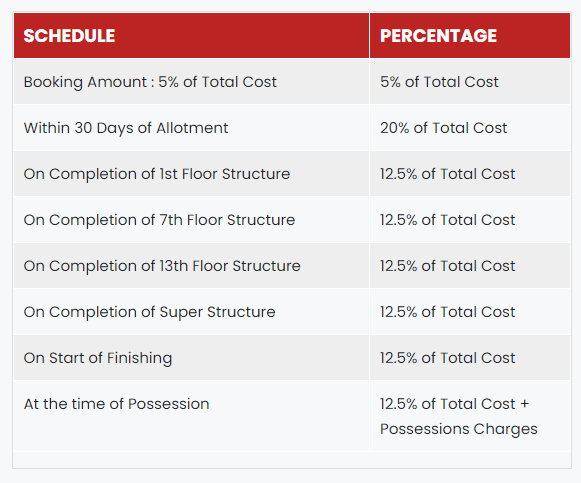 The Balance amount of your flat can be paid in 6 installments [ upto 3 years] according to the Payment Plan opted.
